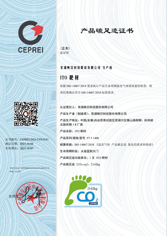 > CEPREI-2023-CFP-0181 碳足跡證書(shū)
