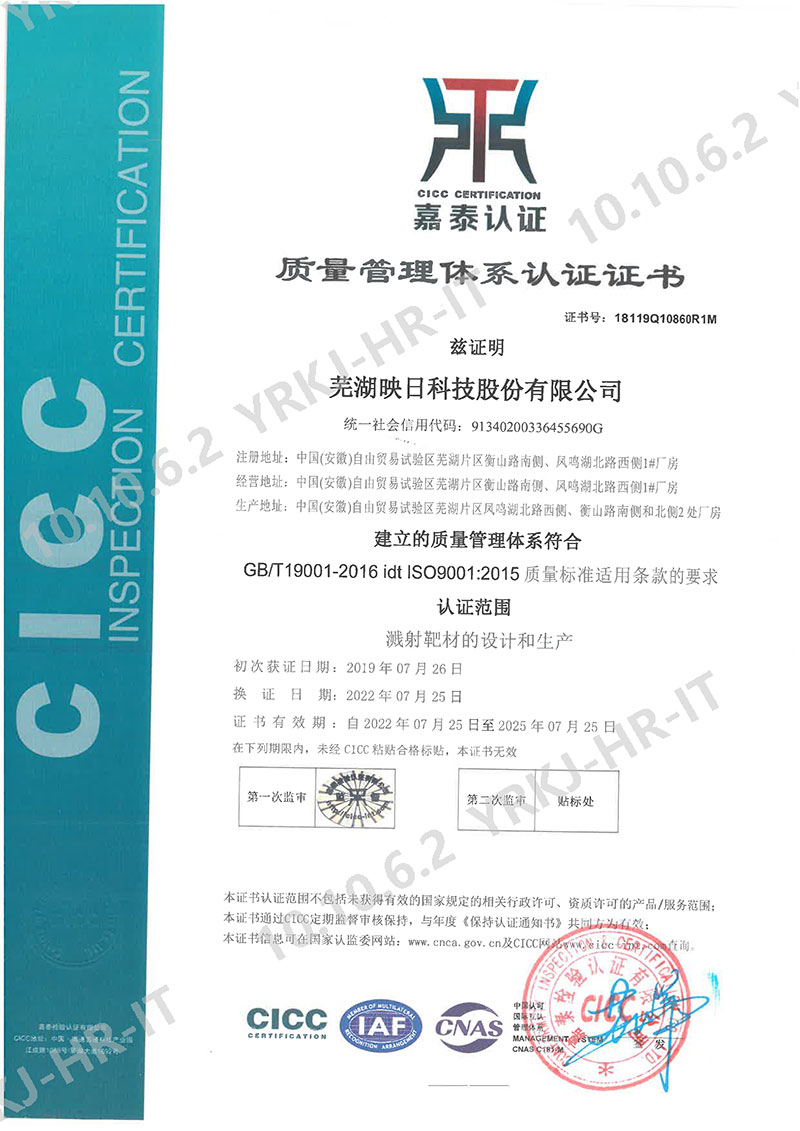 > ISO9001質(zhì)量管理體系認證證書(shū)