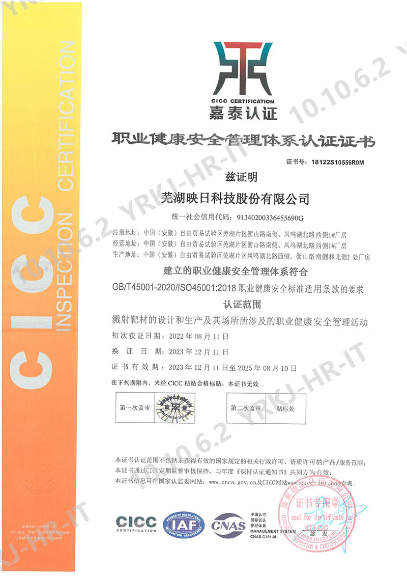 ISO45001職業(yè)健康管理體系認證證書(shū)